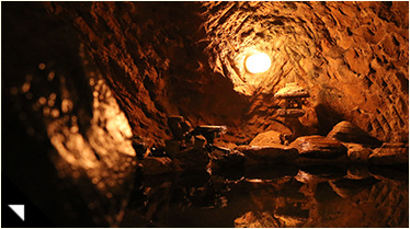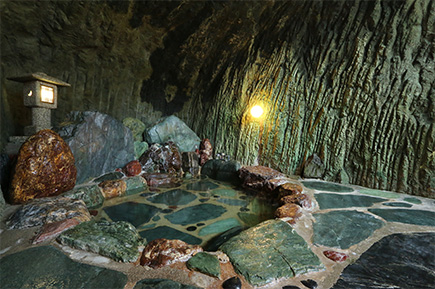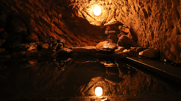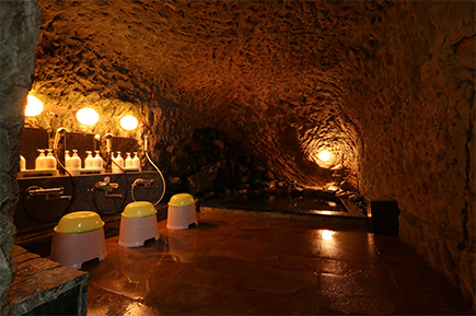 面岩で覆われた大地を感じる幻想的なお風呂。岩山の絶壁を利用していた貯蔵庫の岩穴を利用しております。岩穴でこもる蒸気が心地よく、体の芯まで温まります。